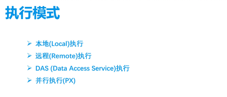 OceanBase 是Share Noting 的分布式数据库架构,并行执行可以满足 AP 场景(数据量大,处理时间长)下对单个请求并发处理需求,但对于TP场景(耗时短,用户QPS高), 一个SQL请求耗时可能只有几个ms甚至几百us, 一般都是串行执行(并行执行调度等开销相对TP耗时较大)。为了能够在分布式场景下高效处理TP场景请求, OceanBase提供了多种执行模式,包括本地执行、远程执行、DAS执行。