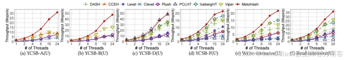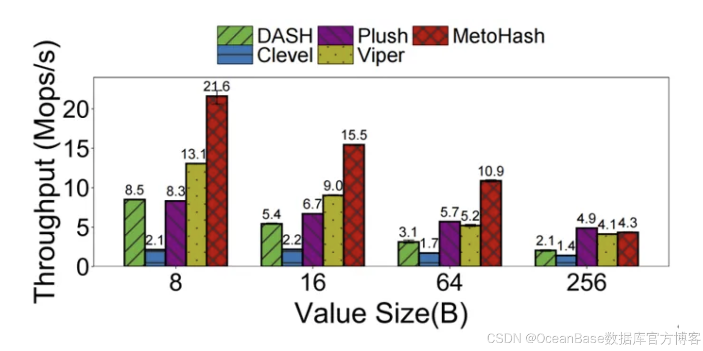 在实际搭载英特尔傲腾持久内存的测试平台上,MetoHash 与八种前沿方案进行了全面对比。