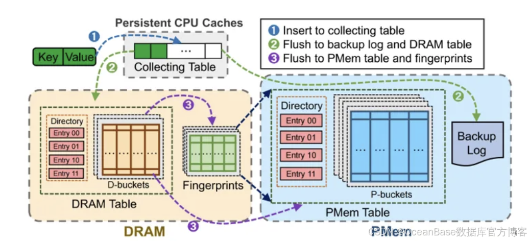 图2 持久缓存刷入 DRAM 和 PMem 中