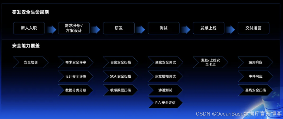 OB Cloud 将安全能力深度嵌入研发全流程,构建起闭环管理体系:从新人入职的强制安全培训,到需求阶段的安全威胁建模与合规评审,再到研发阶段的白盒 / 灰盒代码扫描(搭载 SonarQube 等专业工具)、发版前的安全卡点(高危漏洞清零才可上线),以及上线后的漏洞快速响应,确保产品从诞生之初就符合全球主流合规要求。