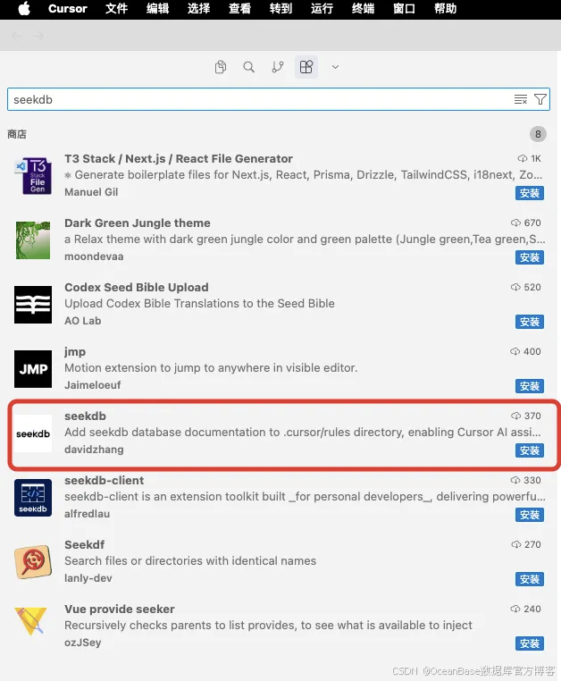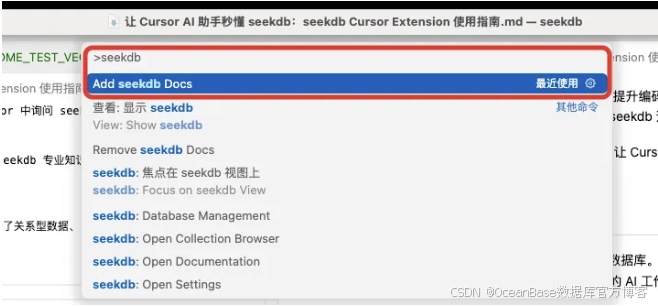 让 Cursor AI 助手秒懂OceanBase seekdb向量数据库 —— Cursor seekdb 扩展插件使用指南